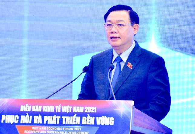 Ngày 5-12, Diễn đàn Kinh tế Việt Nam năm 2021 "Phục hồi và phát triển bền vững" đã chính thức khai mạc với sự chủ trì của Ủy viên Bộ Chính trị, Chủ tịch Quốc hội Vương Đình Huệ.
