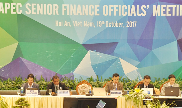Trong khuôn khổ Hội nghị Bộ trưởng Tài chính các nước thành viên APEC 2017 (FMM), sáng 19-10, tại TP Hội An (Quảng Nam), diễn ra Hội nghị Quan chức Tài chính cao cấp và Hội nghị Thứ trưởng Tài chính và Phó Thống đốc Ngân hàng Trung ương APEC (SFOM) nhằm chuẩn bị nội dung, kiện toàn các báo cáo và văn kiện để báo cáo lên các Bộ trưởng.