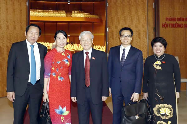 Tổng Bí thư Nguyễn Phú Trọng gặp gỡ các đại biểu dự Kỳ họp. |