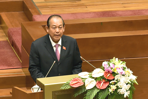 Phó Thủ tướng Thường trực Chính phủ Trương Hòa Bình trình bày báo cáo của Chính phủ. |