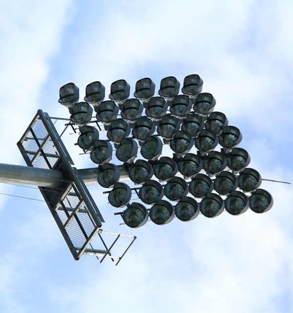 Giàn đèn chiếu sáng sân Hòa Xuân hiện đại, đảm bảo tiêu chuẩn. |