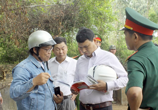 Ông Hồ Kỳ Minh, Bí thư Quận ủy Cẩm Lệ kiểm tra thực tế tại hiện trường. |