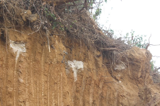 Chiều 6-5, có mặt cùng đoàn công tác do đồng chí Hồ Kỳ Minh, Bí thư Quận ủy Cẩm Lệ kiểm tra thực tế tại hiện trường, chúng tôi phát hiện một khoảnh đất rộng hàng trăm mét vuông được xác định trước đây người dân chôn mồ mả đã bị thi công xúc đi, sâu hoắm. Tại khu vực gần sát miếu âm linh đã hư hỏng, hầu hết các ngôi mộ đều bị san bằng, không còn nấm, cây cối phủ um tùm. Cách mặt đất khoảng 1,5m, nơi bị đào đất mang đi lộ ra vệt cát trắng của 8 ngôi mộ nằm cách nhau khoảng 3m hiện rõ trong nền đất sét.