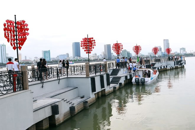 | “Cầu tàu tình yêu” tại bến du thuyền DHC Marina tô điểm cho vẻ đẹp sông Hàn. |
