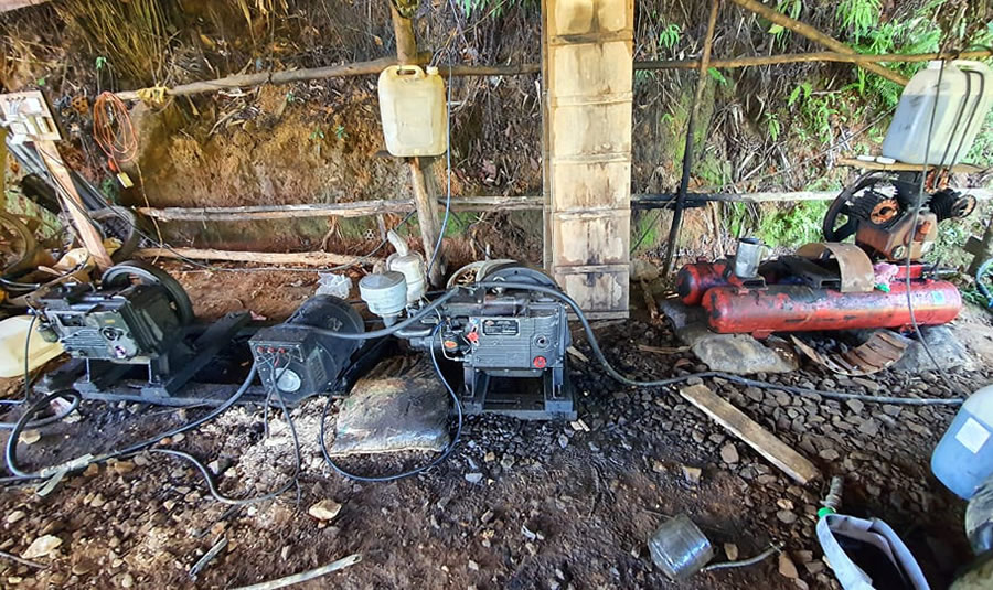 Máy móc phục vụ cho việc khai thác vàng trái phép tại Khe Đương. |