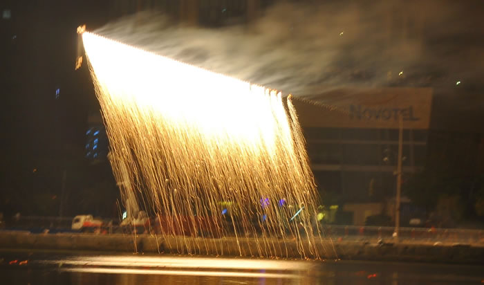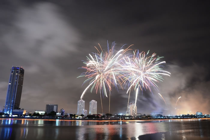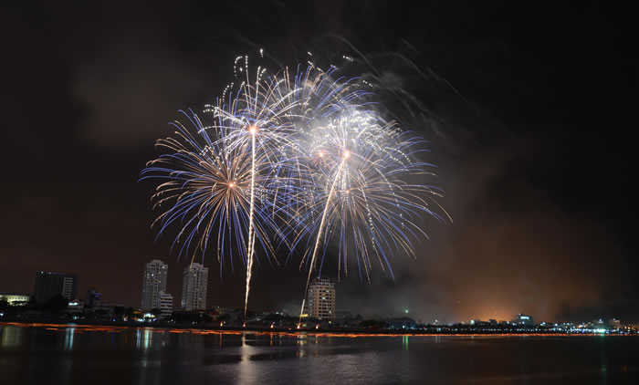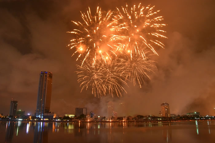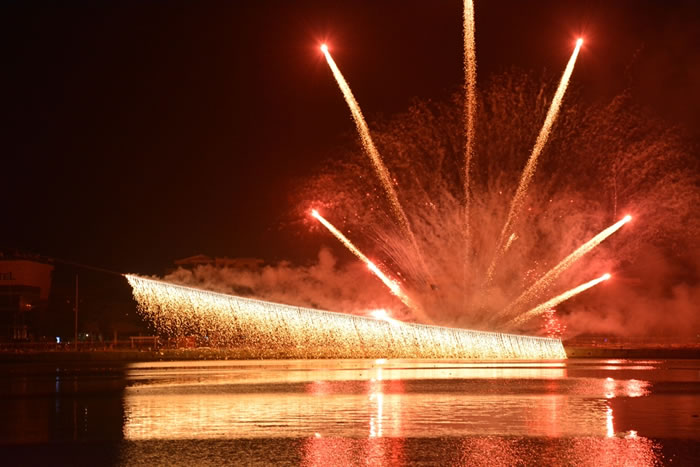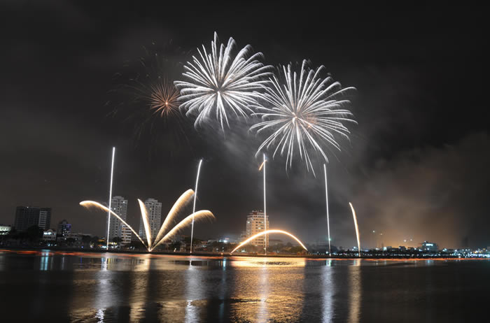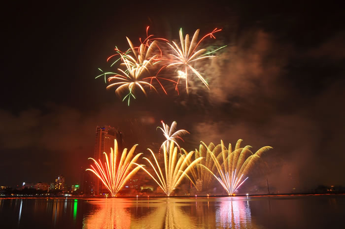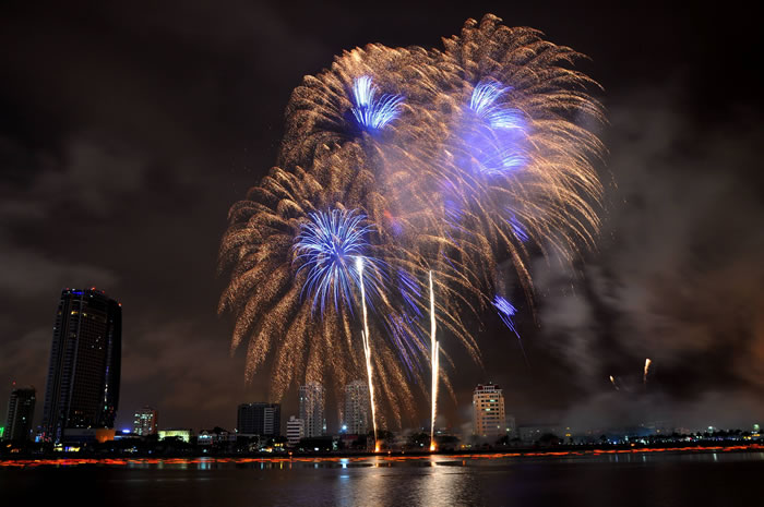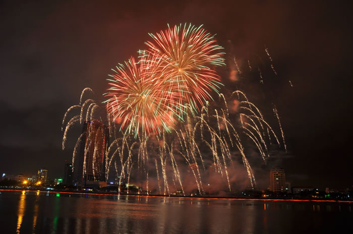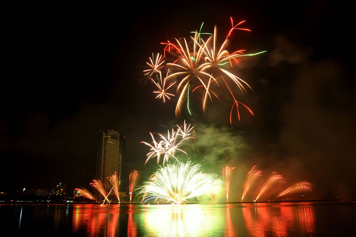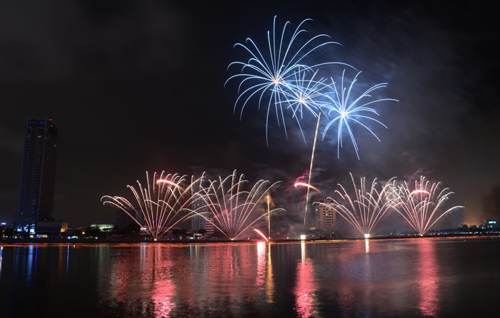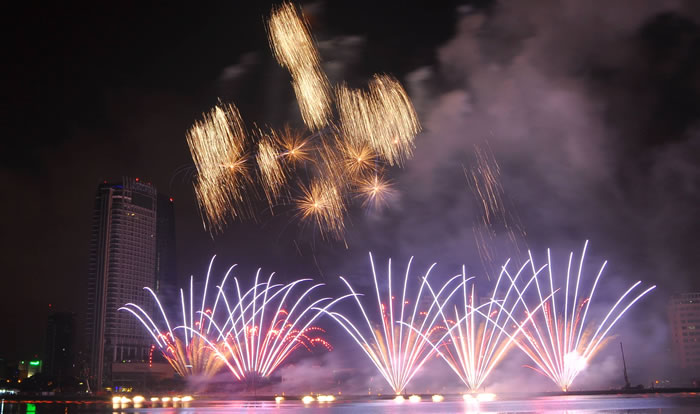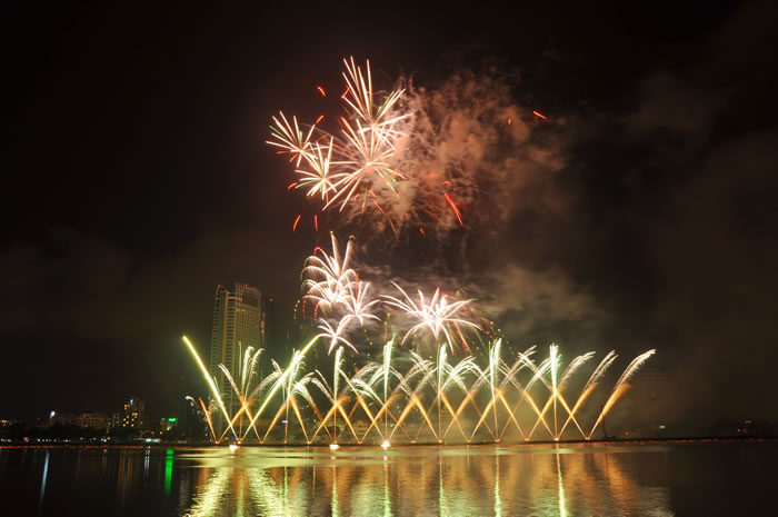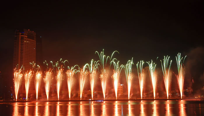 (Cadn.com.vn) - Màn khai tiệc trên Cảng Sông Hàn vào tối 28-4 là sự thăng hoa của tam tấu với 3 phân đoạn “Bầu trời xanh châu Phi” của đội Pyrotecnico (Nam Phi), “Trọn vẹn tình yêu” của Pyrotecnico (Hoa Kỳ) và “Bản giao hưởng sắc màu” của chủ nhà Đà Nẵng – Việt Nam”.