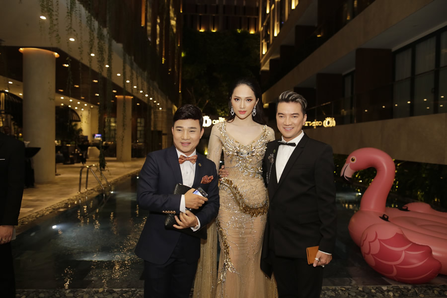 Ca sĩ Đàm Vĩnh Hưng, Quang Linh và Hoa hậu Hương Giang cùng tham gia sự kiện khai trương New Orient. |