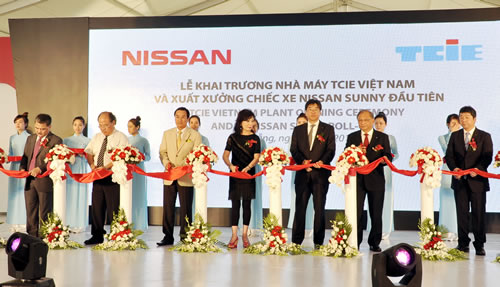 Lễ cắt băng khánh thành nhà máy TCIE và ra mắt xe Nissan Sunny. |