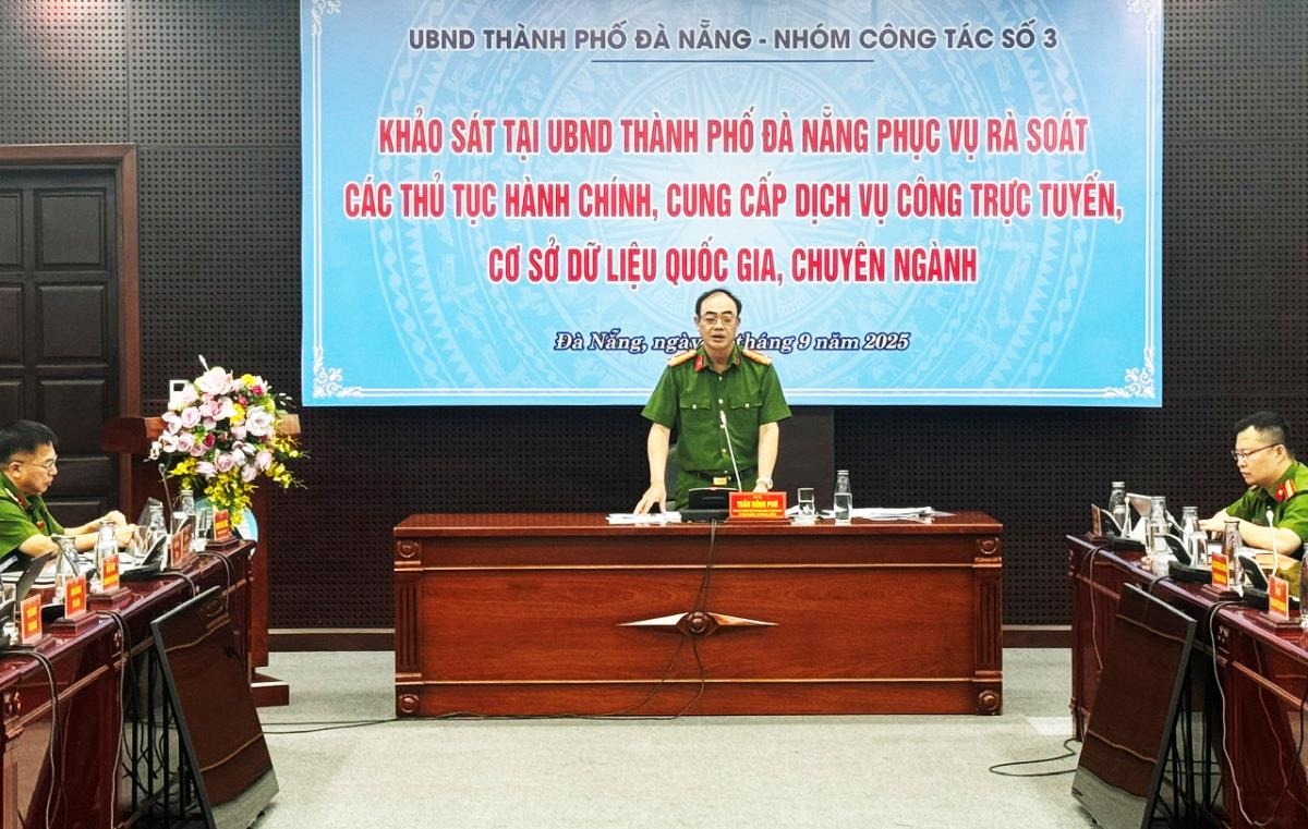 Ngày 23-9, Nhóm công tác số 3 của Chính phủ do Đại tá Trần Hồng Phú – Phó cục trưởng Cục Cảnh sát QLHH về TTXH (Bộ Công an) dẫn đầu đã có chuyến khảo sát tại UBND TP Đà Nẵng nhằm phục vụ rà soát các thủ tục hành chính (TTHC), cung cấp dịch vụ công trực tuyến (DVCTT), cơ sở dữ liệu quốc gia (CSDLQG), chuyên ngành.