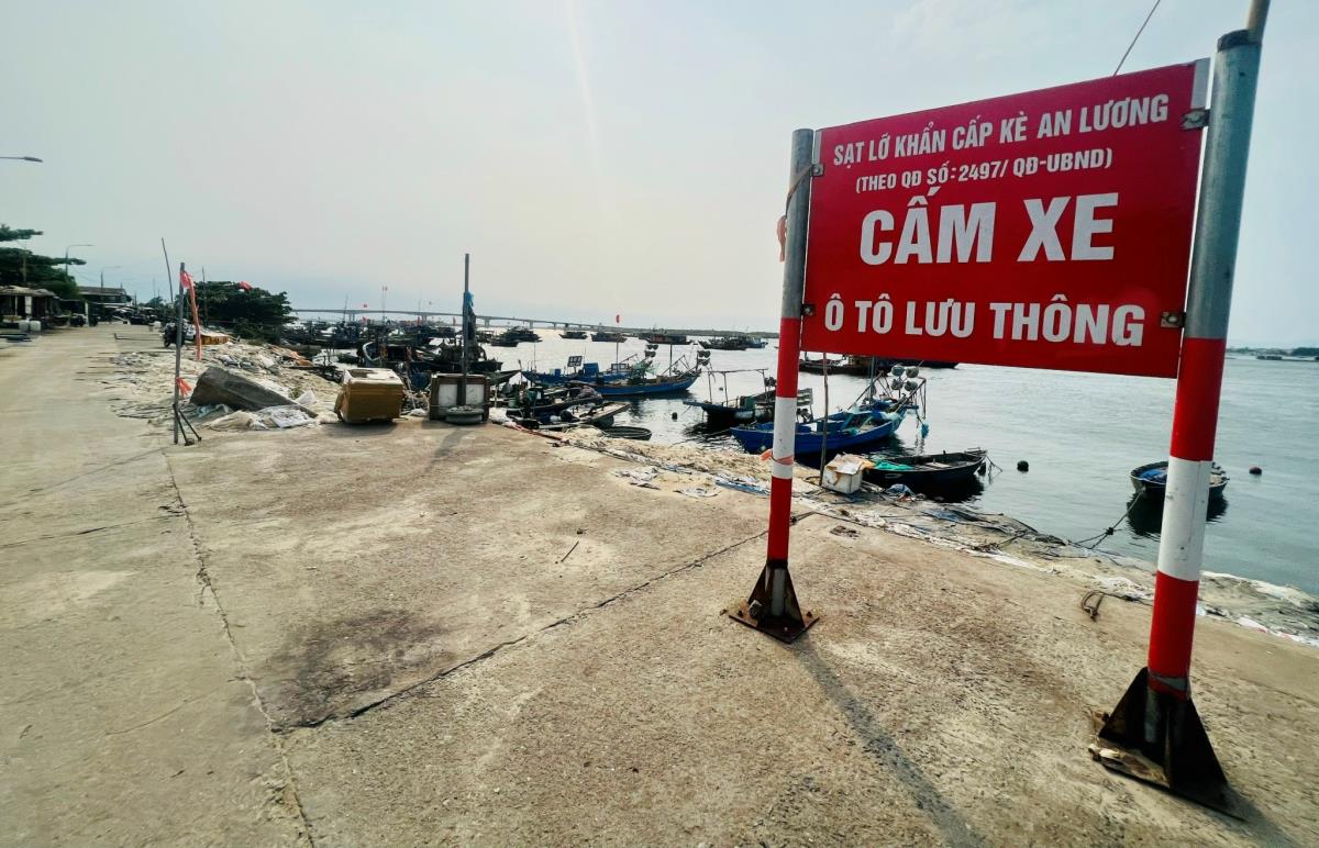 Dọc bến cá An Lương, các hạng mục gia cố bờ kè bằng biện pháp đắp bao cát không còn nguyên vẹn. Một số vị trí bao cát bị thuỷ triều đánh bật ra. Dọc tuyến bê tông đoạn bến cá cũng bắt đầu xuất hiện những vết nứt gây mất an toàn giao thông. Do sạt lở móc sâu vào đất liền nên người dân đồng thời phải dùng dây để rào chắn, lập biển báo nhằm đề phòng nguy hiểm.