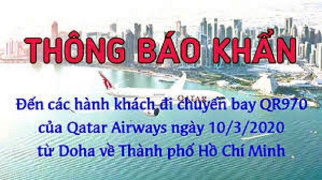 7. QR 970 của Qatar Airways từ Doha về TP.HCM ngày 10-3.