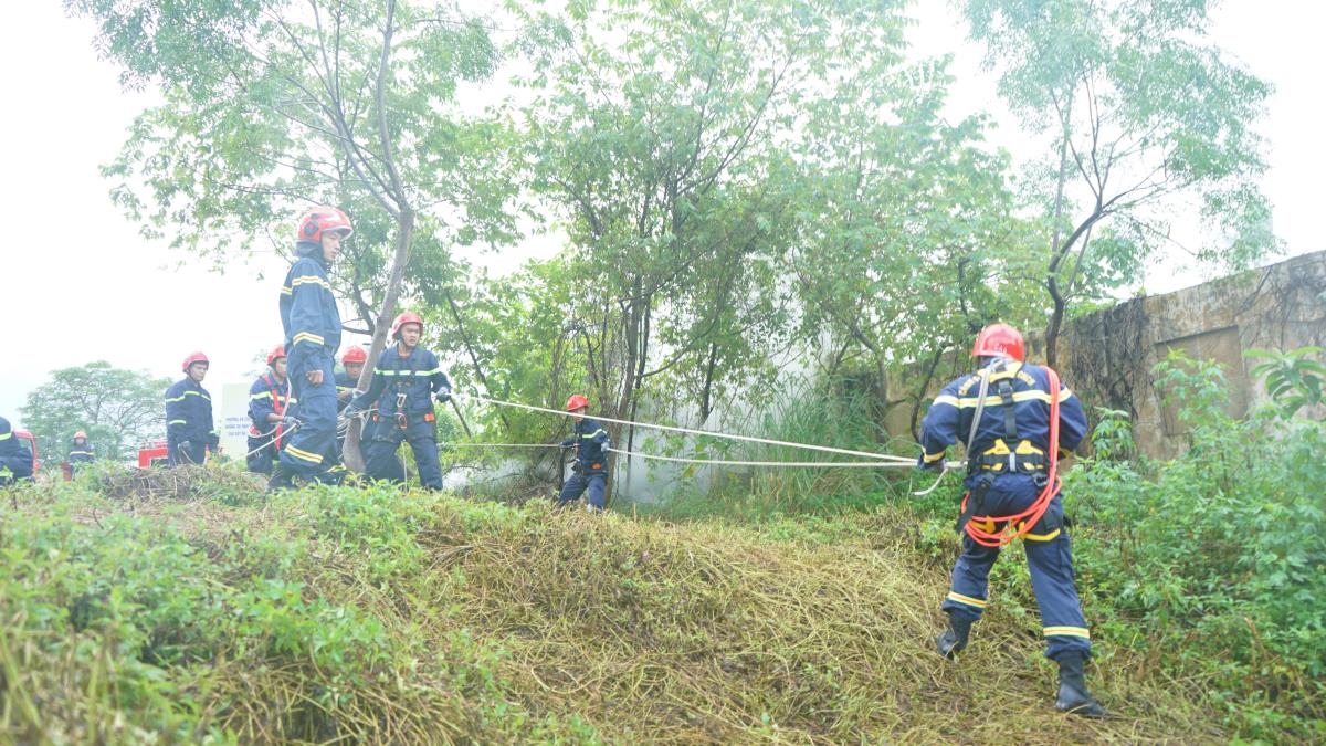 Ngay khi tiếp nhận thông tin, Phòng Cảnh sát PCCC và CNCH huy động hàng chục cán bộ, chiến sĩ cùng 4 xe chuyên dụng nhanh chóng tiếp cận hiện trường. Khu vực được phong tỏa, lực lượng chia mũi tiếp cận theo sườn dốc, sử dụng dây, ròng rọc và thiết bị chuyên dụng để tiếp cận nạn nhân trong vùng cây cỏ rậm rạp, trơn trượt.