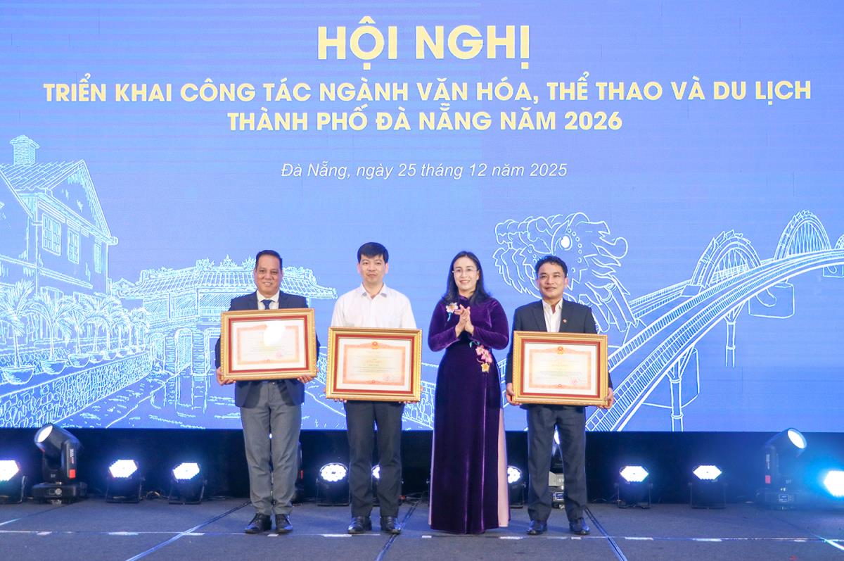 Dịp này, thừa ủy quyền Chủ tịch nước, Phó Chủ tịch UBND TP Nguyễn Thị Anh Thi đã trao Huân chương Lao động hạng Ba cho 2 cá nhân thuộc Sở VHTTDL TP Đà Nẵng; trao Bằng khen của Thủ tướng Chính phủ cho 3 cá nhân có thành tích xuất sắc giai đoạn 2020–2024; khen thưởng của Chủ tịch UBND TP cho 4 tập thể, 10 cá nhân hoàn thành xuất sắc nhiệm vụ năm 2025; và Bằng khen của Giám đốc Sở VHTTDL cho các tập thể, cá nhân có nhiều đóng góp cho sự phát triển của ngành trong năm 2025.
