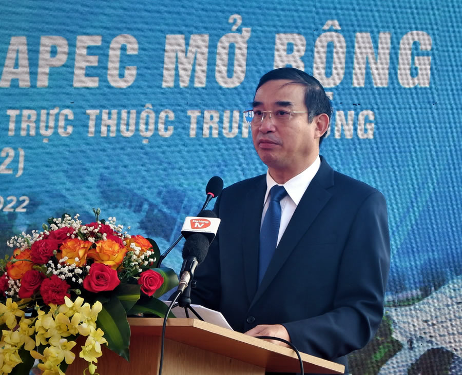 Chủ tịch UBND TP Lê Trung Chinh phát biểu tại lễ khánh thành Công trình Vườn tượng APEC mở rộng. Ảnh: P.T