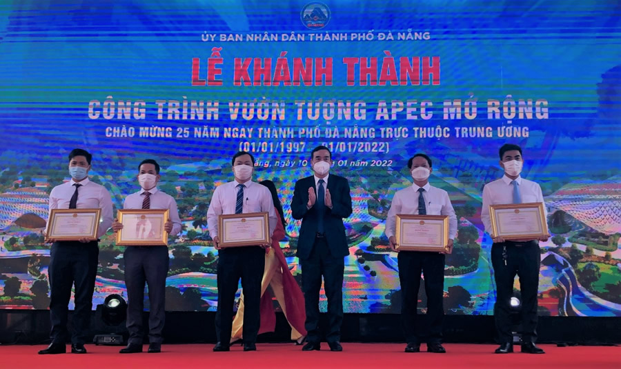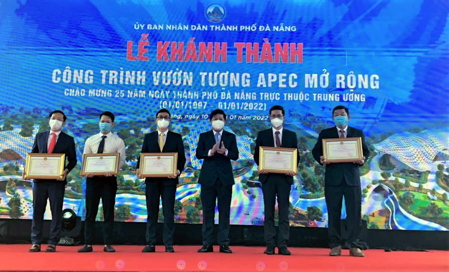 Phát biểu tại lễ khánh thành, Chủ tịch UBND TP Lê Trung Chinh thay mặt lãnh đạo TP, ghi nhận và biểu dương sự cố gắng, nỗ lực của Ban Ban Quản lý dự án đầu tư xây dựng hạ tầng và phát triển đô thị Đà Nẵng cùng các sở, ngành liên quan, đơn vị tư vấn thiết kế, các nhà thầu đã tổ chức thi công công trình đảm bảo tiến độ và an toàn. Cũng theo Chủ tịch UBND TP, đây là công trình có ý nghĩa chính trị, xã hội quan trọng nhằm chào mừng Đại hội đại biểu lần thứ XXII Đảng bộ TP Đà Nẵng, nhiệm kỳ 2020 – 2025; chào mừng Đại hội đại biểu toàn quốc lần thứ XIII của Đảng và kỷ niệm 25 năm TP Đà Nẵng trực thuộc Trung ương. “Công trình Vườn tượng APEC mở rộng là một trong những công trình được nhân dân TP hết sức quan tâm, ngay từ những ngày ý tưởng đầu tư xây dựng, mở rộng và đến lễ khánh thành hôm nay. Công trình không chỉ thể hiện tinh thần hội nhập quốc tế, khát vọng vươn xa của người dân TP mà còn là mong ước về một TP xanh, thân thiện, hài hòa với thiên nhiên, một thành phố an bình…”.