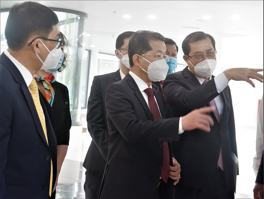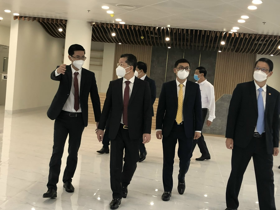 Chủ tịch UBND TP Đà Nẵng Lê Trung Chinh cùng quan khách tham quan nhà sinh hoạt cộng đồng của công trình.