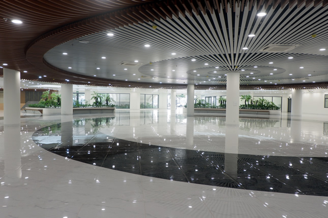Được biết, ngoài điểm nhấn mái vòm rộng được thiết kế hình cánh diều dựa theo ý tưởng “Cánh diều bay cao” của Công ty TNHH MTV Tư vấn thiết kế và xây dựng Phố Xanh, điều tạo nên sự lung linh, kỳ ảo của công trình này khi về đêm chính là hệ thống ánh sáng. Đơn cử, hệ thống chiếu sáng trang trí bên ngoài mái vòm được sử dụng 8 đèn pha đổi màu công suất 150W; chiếu sáng bên trong mái vòm sử dụng 12 đèn pha đổi màu công suất 80W. Ngoài ra, mặt trên mái vòm tại vị trí các khung sườn thép có tăng cường chiếu sáng bằng các đèn Led dây để trang trí.