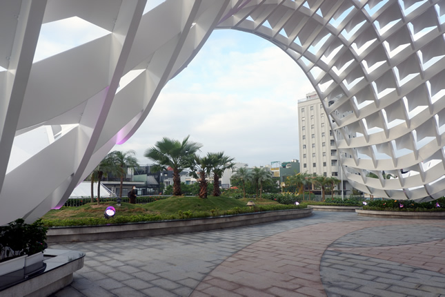 Công trình Vườn tượng APEC mở rộng nằm trên khuôn viên khu đất có diện tích 8.668m2 thuộc P. Bình Hiên (Q.Hải Châu), với tổ hợp công trình bao gồm khu công viên, cây xanh, thảm cỏ, vườn dạo và khu trung tâm là điểm nhấn kiến trúc chính với hệ kết cấu mái vòm rộng, bên dưới là không gian sinh hoạt cộng đồng. Công trình có tầng hầm bố trí đỗ xe công cộng, tầng 1 là không gian nghỉ ngơi, khu dịch vụ, khu thông tin du lịch cho du khách tham quan và tầng 2 là không gian sinh hoạt cộng đồng.