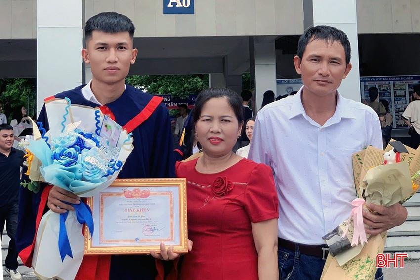 Là con một trong gia đình thuần nông, từ nhỏ, Hào đã luôn nuôi ước mơ trở thành thầy giáo. Để "hiện thực hóa" giấc mơ được đứng trên bục giảng, Hào luôn cố gắng, nỗ lực học tập và đậu vào ngành Sư phạm Địa lý của Trường Đại học Vinh. Sau 4 năm theo học, tháng 6-2024, Hào tốt nghiệp với tấm bằng loại giỏi trong sự vui mừng của bố mẹ. Thế nhưng, khác với lựa chọn của bạn bè cùng trang lứa sau khi tốt nghiệp đại học, Hào tạm gác lại ước mơ trở thành thầy giáo để lên đường thực hiện nghĩa vụ CAND. "Thời điểm Hào nói muốn lên đường nhập ngũ, vợ chồng tôi có hỏi con cứ suy nghĩ cho thấu đáo. Khi thấy con có quyết tâm thực hiện nghĩa vụ CAND, chúng tôi hoàn toàn ủng hộ. Dù Hào là con một, gia đình còn khó khăn nhưng chúng tôi tôn trọng sự lựa chọn của con, luôn động viên Hào cố gắng rèn luyện, hoàn thành tốt mọi nhiệm vụ được giao khi vào đơn vị. Tôi cảm thấy tự hào khi con biết suy nghĩ cống hiến cho quê hương, đất nước", ông Lê Mạnh tâm sự chen lẫn sự tự hào về sự trưởng thành của đứa con cưng.
