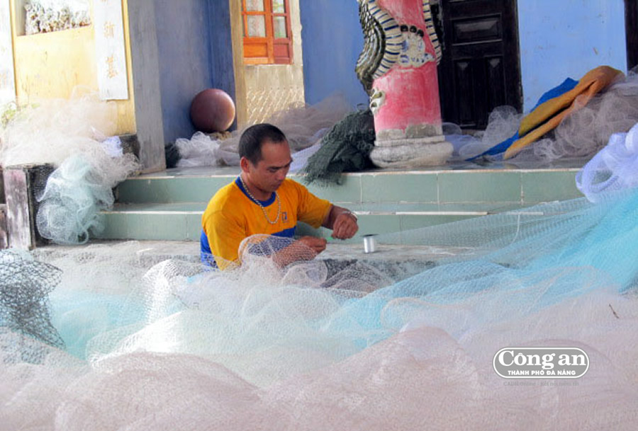 | Sau mỗi chuyến ra khơi, ngư dân ở Bình Minh (Thăng Bình, Quảng Nam) lo tu bổ lưới, ngư cụ chuẩn bị cho chuyến biển sau. |