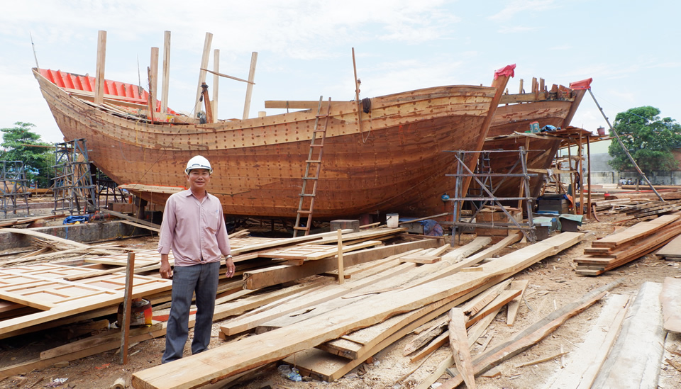 Nghề đóng tàu vỏ gỗ với công suất lớn ở Hoài Nhơn, Bình Định vẫn đắt đơn đặt hàng. |