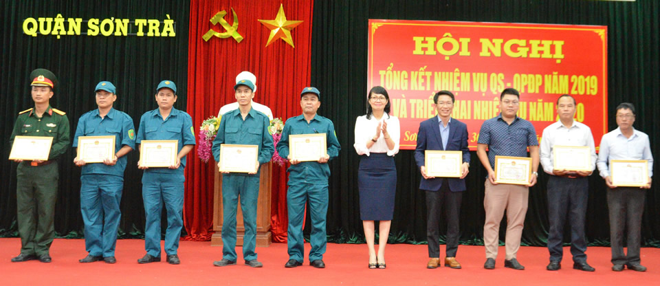 ĐÀ NẴNG - Chiều 30-12, Q. Sơn Trà tổ chức Hội nghị tổng kết công tác quốc phòng - quân sự địa phương (QP-QSĐP) năm 2019, triển khai phương hướng, nhiệm vụ năm 2020 và khen thưởng 10 tập thể, 19 cá nhân đạt thành tích xuất sắc trong công tác này.