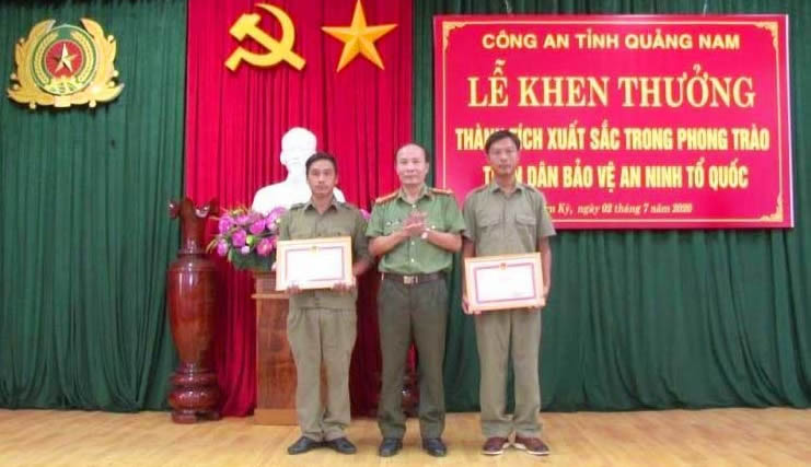 QUẢNG NAM- Ngày 5-7, Phòng Xây dựng phong trào bảo vệ an ninh Tổ quốc CA tỉnh Quảng Nam cho biết, đơn vị vừa tổ chức trao Giấy khen của Giám đốc CA tỉnh cho 3 công dân có thành tích xuất sắc trong phong trào toàn dân BVANTQ trên địa bàn TP Tam Kỳ.