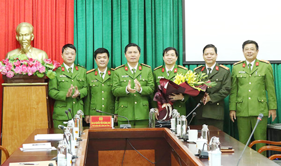 Đại tá Nguyễn Tiến Hoàng Anh trao thưởng cho ban chuyên án. |