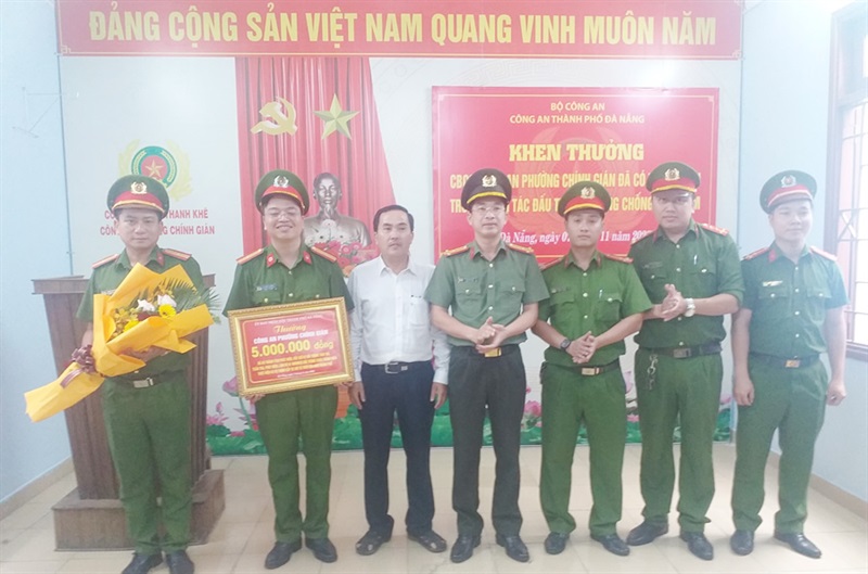 Chiều cùng ngày, thừa ủy quyền Chủ tịch UBND TP Đà Nẵng, Thượng tá Nguyễn Đại Đồng đến khen thưởng CAP Chính Gián (Q. Thanh Khê) về thành tích truy bắt đối tượng truy nã và vụ trộm cắp tài sản.