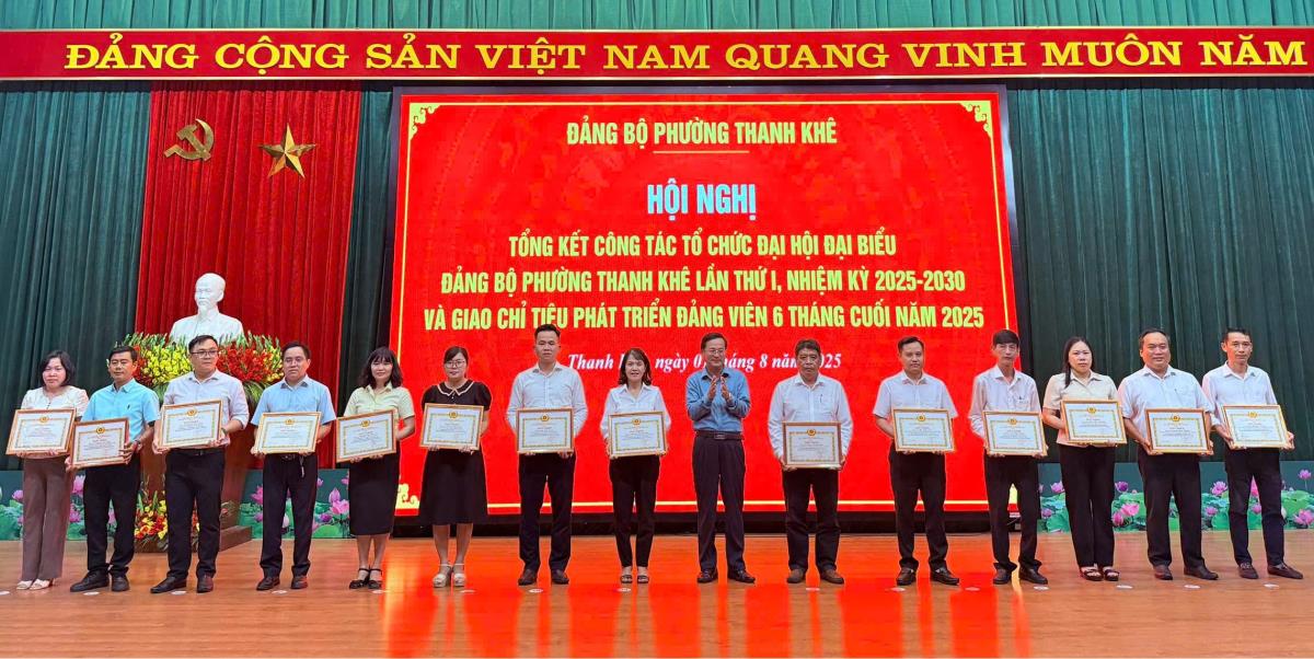 Sáng ngày 1-8, Đảng bộ phường Thanh Khê (TP Đà Nẵng) đã tổ chức khen thưởng cho các tập thể, cá nhân có thành tích tốt trong công tác phục vụ Đại hội Đảng.