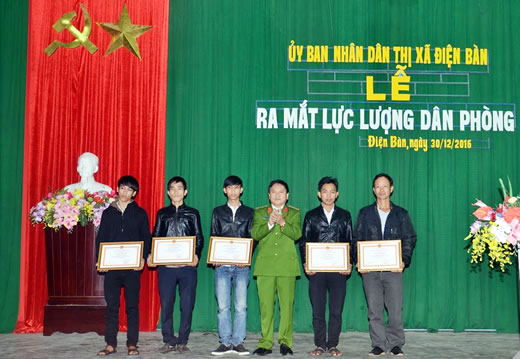 | CATX Điện Bàn khen thưởng các thành viên trong mô hình “Tiếng kẻng dân phòng”, “Tổ tự quản ANTT”. |