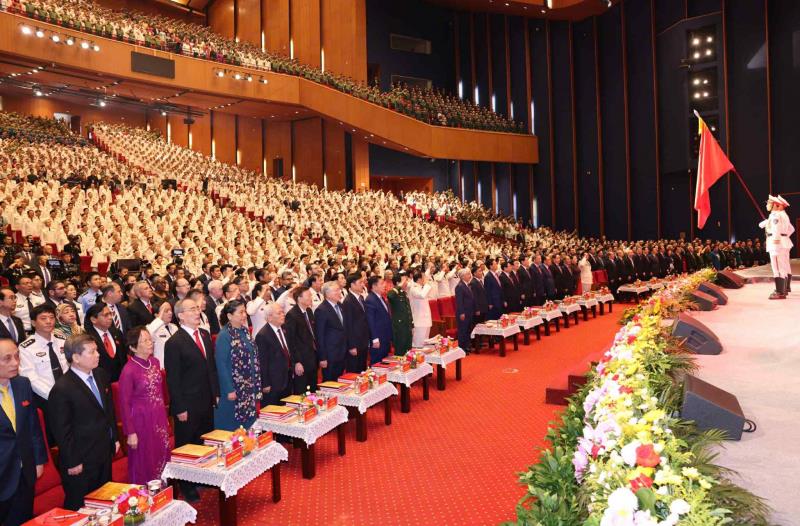 Tham dự Lễ kỷ niệm có Tổng Bí thư Tô Lâm, nguyên Tổng Bí thư Nông Đức Mạnh; đồng chí Lương Cường, Ủy viên Bộ Chính trị, Chủ tịch nước; đồng chí Trương Tấn Sang, nguyên Ủy viên Bộ Chính trị, nguyên Chủ tịch nước; đồng chí Phạm Minh Chính, Ủy viên Bộ Chính trị, Thủ tướng Chính phủ; đồng chí Nguyễn Tấn Dũng, nguyên Ủy viên Bộ Chính trị, nguyên Thủ tướng Chính phủ; đồng chí Trần Thanh Mẫn, Ủy viên Bộ Chính trị, Chủ tịch Quốc hội; đồng chí Nguyễn Sinh Hùng, nguyên Ủy viên Bộ Chính trị, nguyên Chủ tịch Quốc hội; đồng chí Nguyễn Thị Kim Ngân, nguyên Ủy viên Bộ Chính trị, nguyên Chủ tịch Quốc hội.