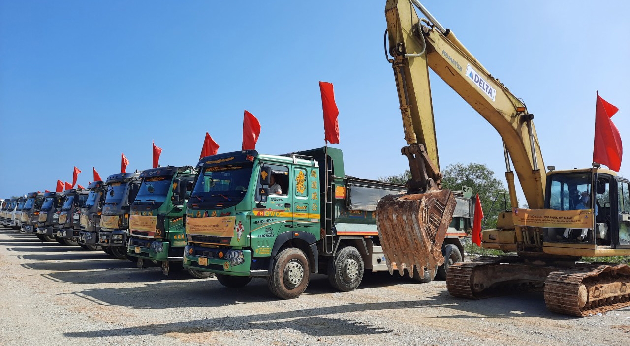 Phương tiện, máy móc phục vụ lễ khởi công. |