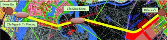Bình đồ hướng tuyến công trình cầu đường Nguyễn Tri Phương nối dài. |