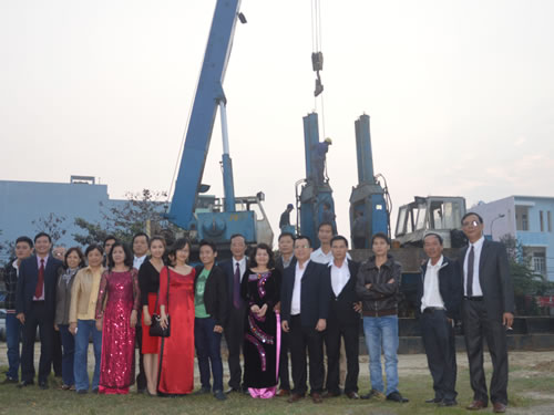 Lãnh đạo nhà trường và đại biểu chụp ảnh lưu niệm trong ngày khởi công.