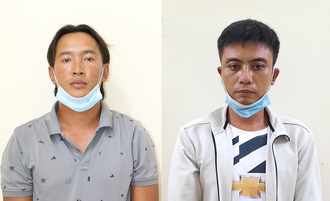 Đối tượng Thành (trái) và Linh tại cơ quan điều tra.