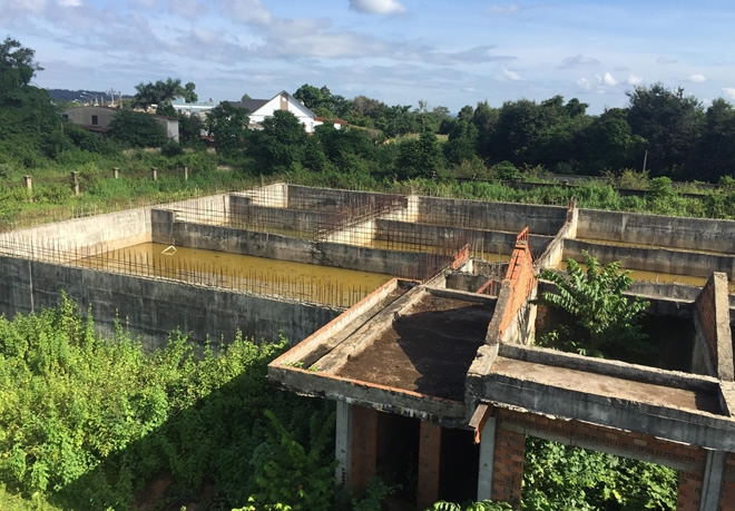 Dự án khu xử lý nước thải tập trung có tổng mức đầu tư hơn 37 tỷ đồng nhưng thi công dở dang và bỏ hoang nhiều năm qua. |