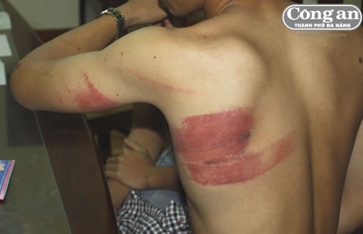 Thương tích trên người của Nguyễn Khánh Toại và Nguyễn Thiên Nghĩa và hung khí gây án. |