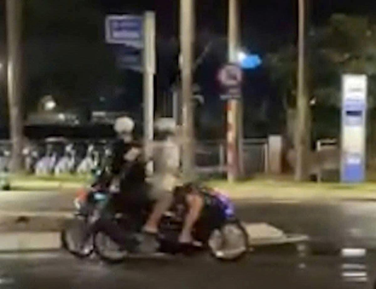 Ngay sau đó, cả hai nhóm không đánh nhau mà rời khu vực, nhưng tiếp tục gặp lại nhau trên đường 2 Tháng 9. Lúc dừng tại đèn đỏ gần đuôi cầu Rồng, các đối tượng tiếp tục lời qua tiếng lại, rồi truy đuổi nhau bằng xe máy với tốc độ cao, lạng lách, đánh võng, gây nguy hiểm cho người đi đường. Khi đến gần nhà sách Đà Nẵng, một số đối tượng ép xe nhóm thanh niên kia và dùng mũ bảo hiểm, dây thắt lưng tấn công.
