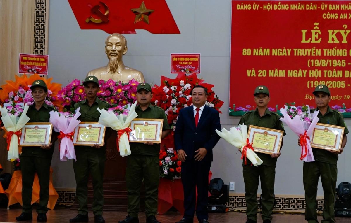 Tại lễ kỷ niệm, ông Nguyễn Hảo-Chủ tịch HĐND xã Đại Lộc đã biểu dương những thành tích mà CAX Đại Lộc đã đạt được trong thời gian qua. Và, trong thời gian đến cần quán triệt sâu sắc đường lối của Đảng, chủ trương của Nhà nước đến từng CBCS để mỗi cán bộ CA là một tấm gương để người dân noi theo; tập trung xây dựng lực lượng CA thật sự trong sạch, vững mạnh, tăng cường phòng chống tham nhũng, đoàn kết nội bộ, xây dựng lực lượng CA trở thành lực lượng nòng cốt nhằm thực hiện tốt nhiệm vụ bảo vệ ANTT, kịp thời trấn áp các loại tội phạm; cần quan tâm, duy trì các mô hình tiên tiến, gương điiển hình về ANTQ và kịp thời biểu dương khen thưởng để phòng trào toàn dân BVANTQ ngày càng được tốt hơn; tiếp tục phát huy sức mạnh của hệ thống chính trị, tạo điều kiện để lực lượng CAX hoàn thanh xuất sắc nhiệm vụ được giao, góp phần thúc đẩy kinh tế-xã hội của địa phương ngày càng phát triển, phấn đấu đến năm 2030 đưa Đại Lộc trở thành đơn vị hành chính cấp phường như Nghị quyết Đại hội Đảng bộ xã Đại Lộc lần thứ I nhiệm kỳ 2025-2030 đề ra,