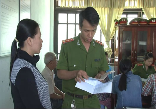 Đại úy Mai Văn Hiển hướng dẫn các thủ tục cho công dân. |