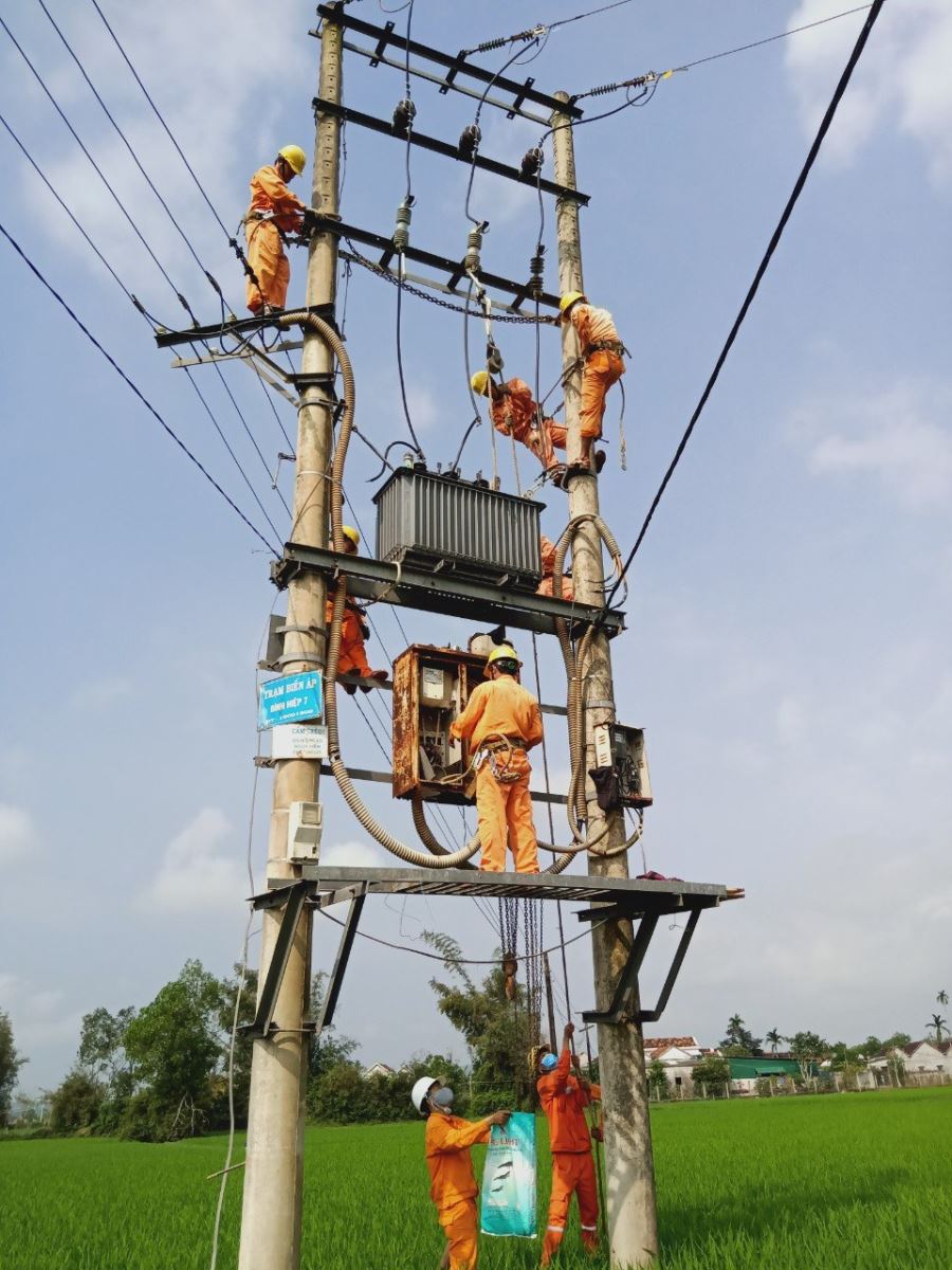 Công nhân ĐLBS thi công hoán đổi MBA để đảm bảo cấp điện cho khách hàng sử dụng điện.