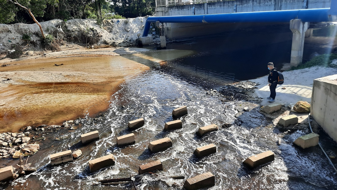 Theo phản ánh của người dân, trong 2 ngày 13 và 14-1, chúng tôi đã đến dòng suối Ba La nhận thấy nhiều loại cá rô phi, ngạnh, mại... chết nổi trắng cả dòng suối. Nước chảy trong suối có màu đen bốc mùi nồng nặc của hóa chất. Chúng tôi đến vị trí mương xả nước thải từ KCN Tam Thăng ra suối Ba La nhận thấy dòng nước có màu đen đục, mùi hôi của hóa chất rất nặng sộc vào mũi khiến chúng tôi ngạt thở.