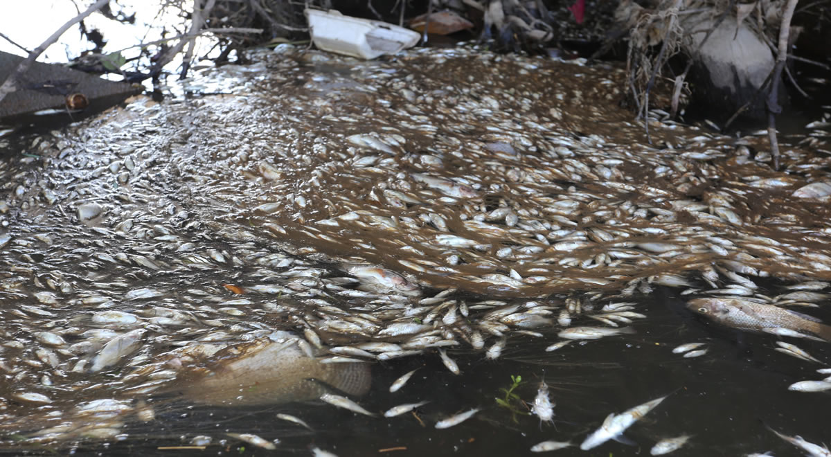Cá chết nổi trắng suối Ba La ngày 13-1. |