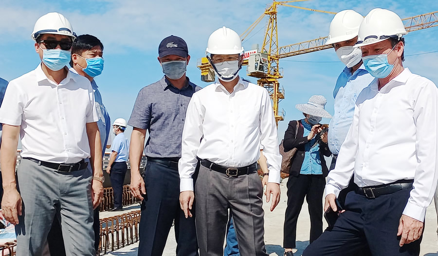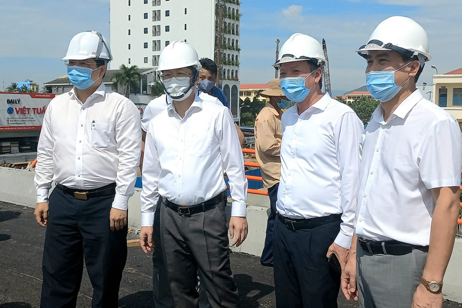 Kiểm tra công trình cải tạo Cụm nút giao thông phía Tây cầu Trần Thị Lý, Bí thư Thành ủy Nguyễn Văn Quảng yêu cầu: Có báo cáo đề xuất gia hạn tiến độ cụ thể nhưng phải hoàn thành trước 31-12-2021