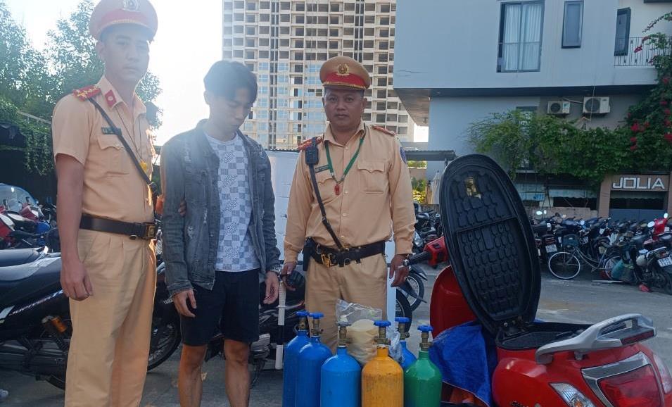 Lực lượng 911 Công an TP Đà Nẵng ngày 6-6 cho biết, đã bàn giao đối tượng Trần Thanh Hoàng (2001, trú tỉnh Gia Lai) cho Công an phường Phước Mỹ (Q. Sơn Trà, Đà Nẵng) để điều tra, xử lý về hành vi vi phạm TTATGT và vận chuyển “khí cười” trái quy định.