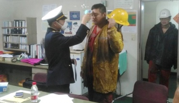 Các thuyền viên cập cảng Vũng Áng đều được kiểm tra thân nhiệt. |