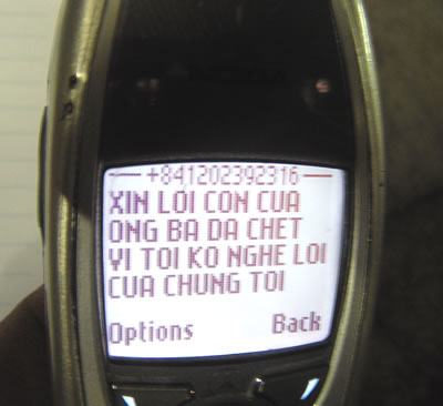 Tin nhắn hung thủ nhắn vào số máy của anh Nguyễn Hữu Phước vào sáng 12-5. |