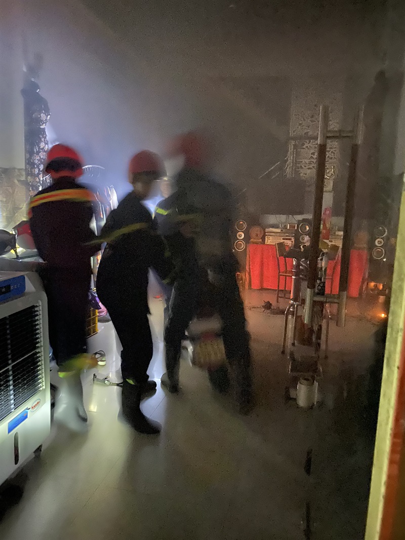 Khi đến nơi, qua trinh sát phát hiện có 4 người đang mắc kẹt tại tầng 2 của ngôi nhà, những nạn nhân này đang tập trung tại ban công chờ được cứu. Đám cháy xảy ra tại tầng 1; khói bốc lên tầng 1 và tầng 2 của ngôi nhà. Trong khi đó, cửa ở tầng 1 là cửa xếp đang bị khóa bên trong.