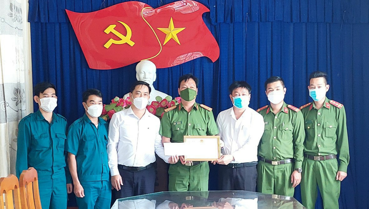 Lãnh đạo xã Hòa Phú (H. Hòa Vang) khen thưởng đột xuất cho lực lượng 8394. |
